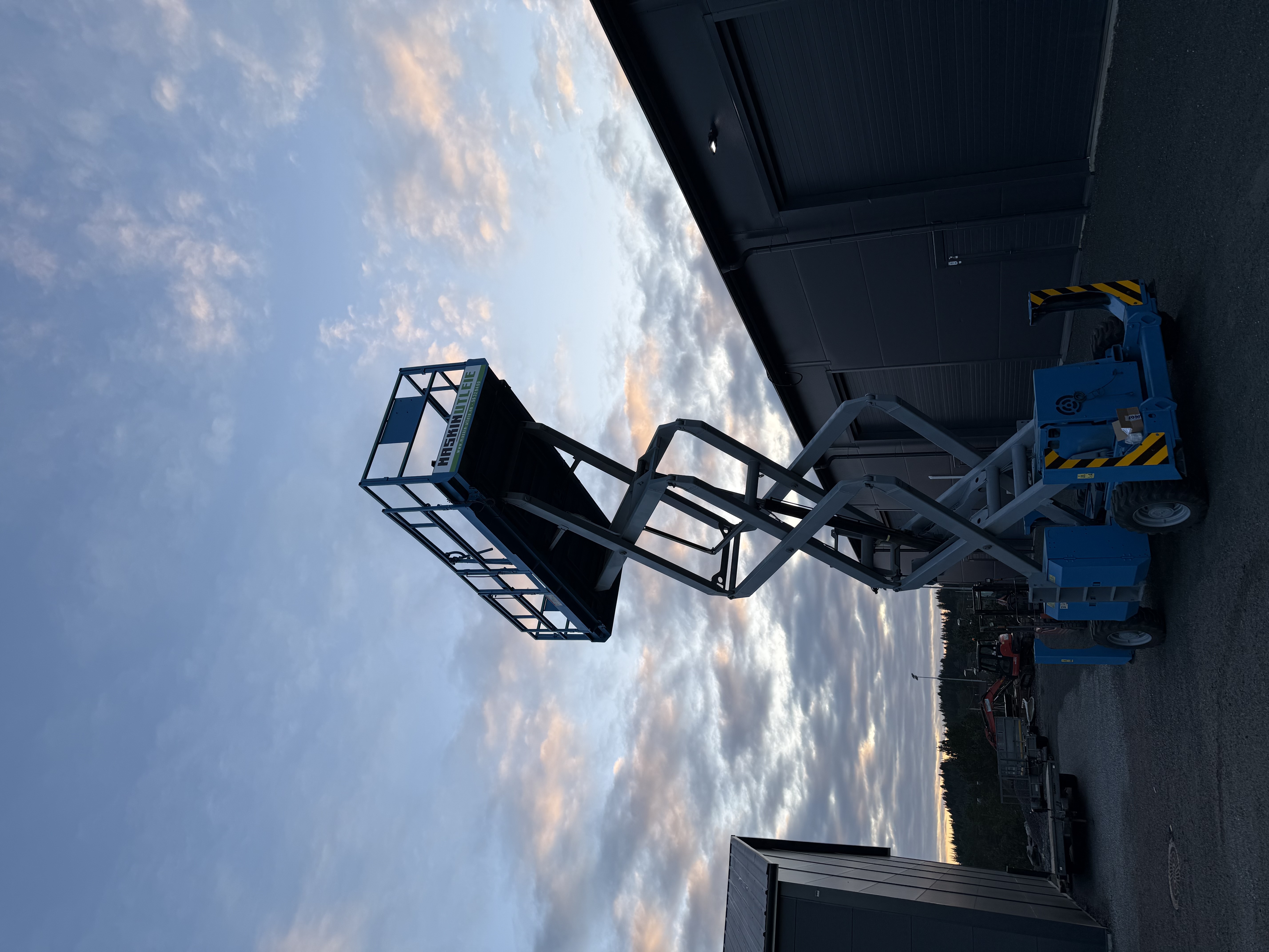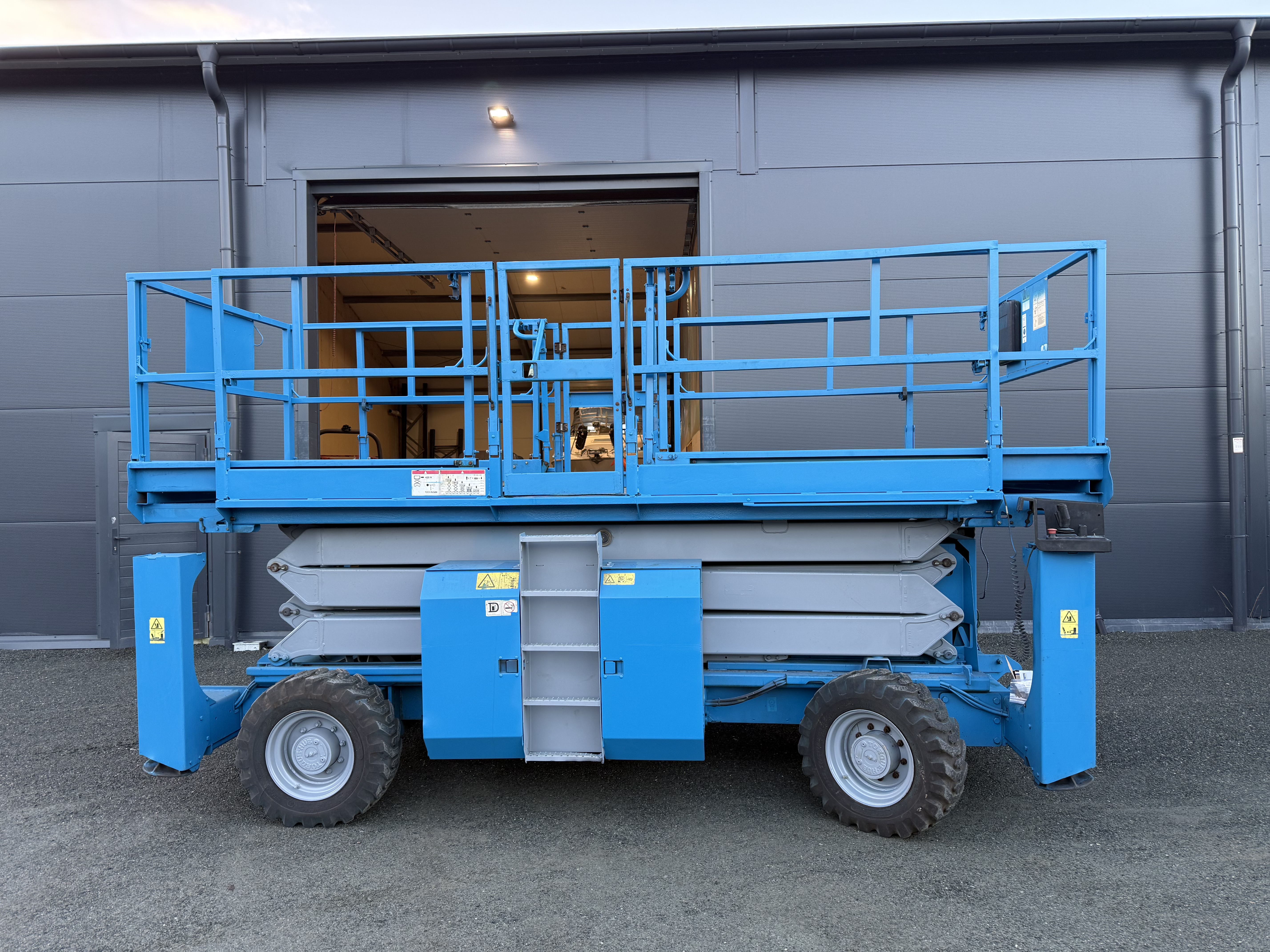 Genie GS-3384 solid og robust lift, som løfter hele 10 meter og funker som en god arbeidsplatform med over 2 meter i bredden.